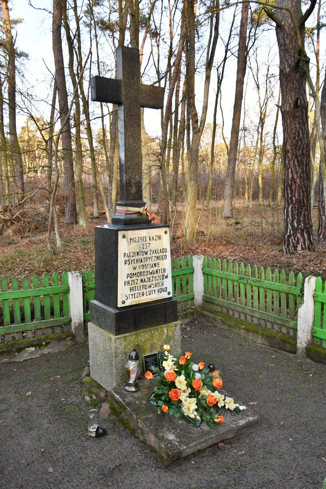 W lesie pod Jarogniewicami Sonderkommando Lange zamordowało 534 pacjentów szpitala psychiatrycznego w Kościanie. Akcję przeprowadził ten sam oddział, który wcześniej zamordował pacjentów ze szpitali w Owińskach i Dziekance. Osoby chore zabijano w mobilnej komorze gazowej – samochodzie z napisem Kaiser’s Caffe Geschäft – za pomocą tlenku węgla, który wtłaczano z dostarczanych z Berlina butli. W ten sposób zginęło 237 mężczyzn i 297 kobiet. Ciała zakopano w 3 zbiorowych grobach o wymiarach 9 x 9 m, 6 x 6 m oraz 4 x 6 m. W lutym 1940 r. w tym samym miejscu zagazowano upośledzone umysłowo kobiety z Zakładu Sióstr Elżbietanek w Osiecznej. Do zakładu w Kościanie przewieziono następnie 2750 chorych psychicznie Niemców (z zakładów psychiatrycznych Treptow, Lauenburg, Uckermünde i ze Szczecina), których w ramach Akcji T4 zamordowano w lasach koło Stęszewa. Od 25 lutego do 6 marca 1944 r., w celu zatarcia śladów zbrodni, pod Jarogniewicami działało SS Sonderkommando Legath. Masowe groby rozkopano a ciała spalono. W sumie Niemcy zamordowali ponad 3000 pacjentów ze szpitala w Kościanie. W 1946 r. na cmentarzu w Kościanie złożono urnę z prochami chorych, którzy zostali zagazowani w lesie pod Jarogniewicami.